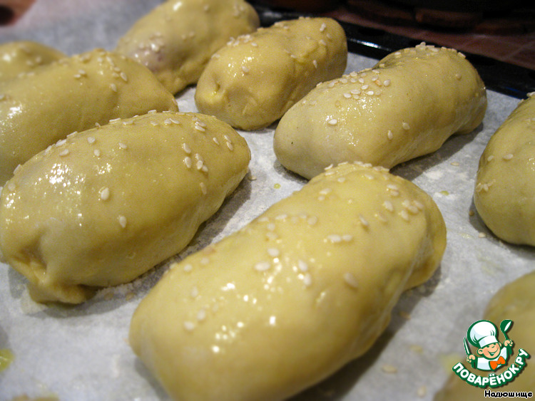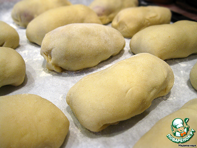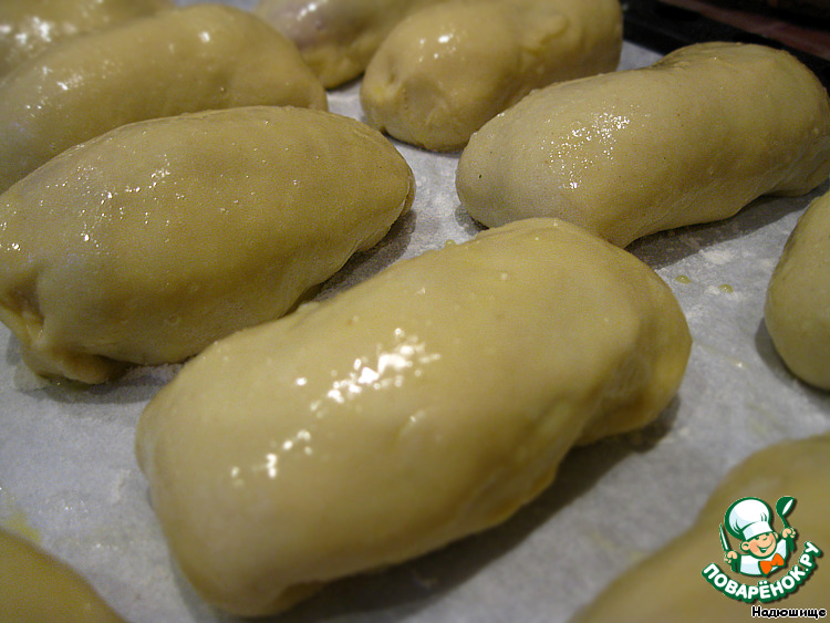 Выкладываем все пирожки на противень, посыпав мукой или застелив пергаментом.