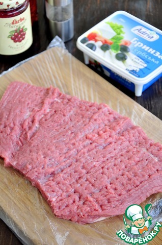 Говядину зачистить от пленок. Разрезать "книжкой" 1 см толщиной.