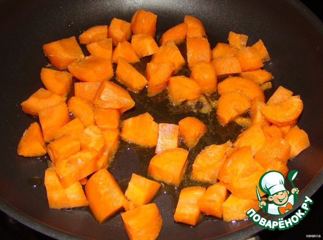 Морковь режем. И тоже обжариваем.. С мелко нарезанным чесноком (2 зубчика)