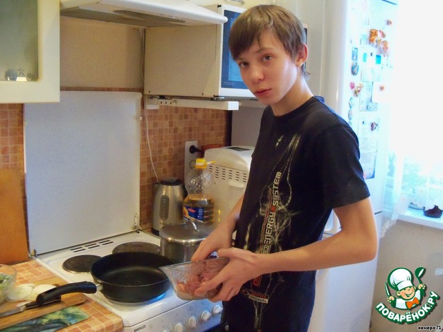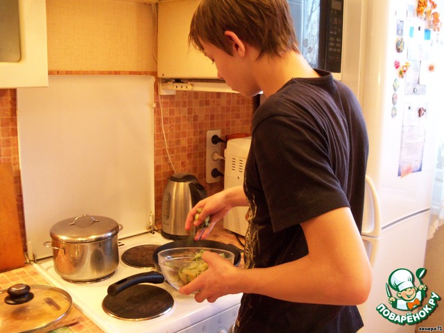 | Поварята, хочу представить моего старшего сына Владислава, ему почти 15 лет, он тоже почти мужчина, который частенько помогает мне на кухне (например: картошку с курицей в духовке он сам один готовит нам на ужин и салат может настругать). И вот у нас сегодня праздник. Сын для родителей готовит романтический ужин и на конкурс "Весна в сердце". Может и не совсем оригинальное блюдо, но маме есть кем гордится. |