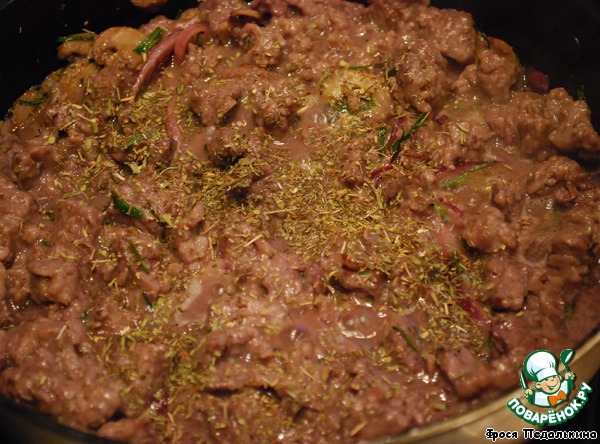 Добавить к мясу овощи, бульон, маринад, эстрагон, прованские травы,