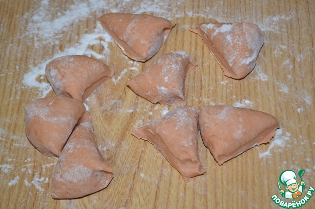 Делаем шарик и раскатываем каждый кусок теста в круг, около 6 см в диаметре. Разрезаем круг на 4 сектора.