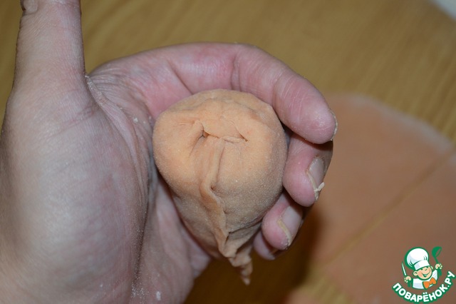 Для приготовления "морковок" делим тесто на 8 равных частей.