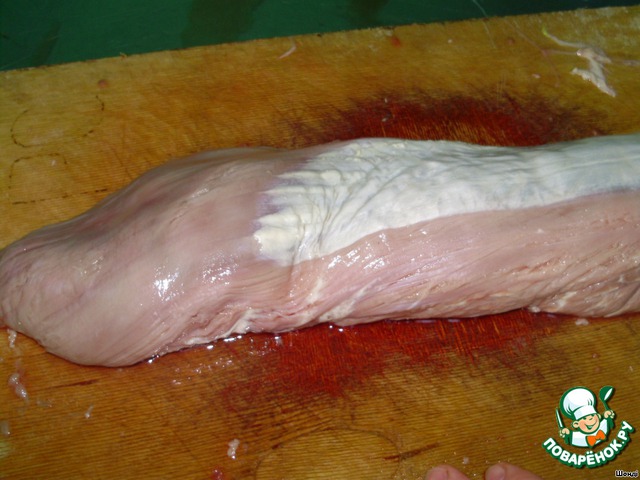 Вырезку отчистить от пленок, нарезать на куски и отбить.