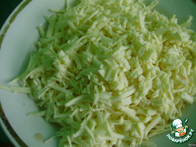 Подготовить начинку: сыр натереть на крупной терке, чеснок измельчить.
