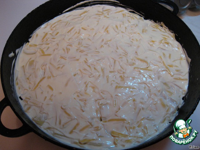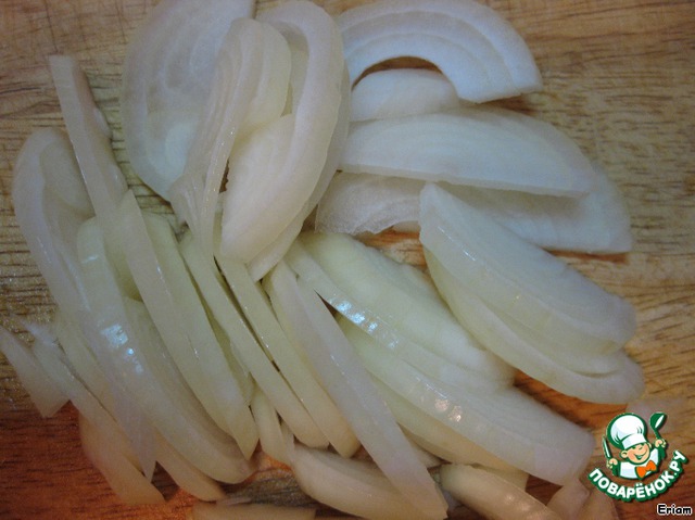 Много лука даст лишнюю жидкость, которая не нужна в этом блюде!