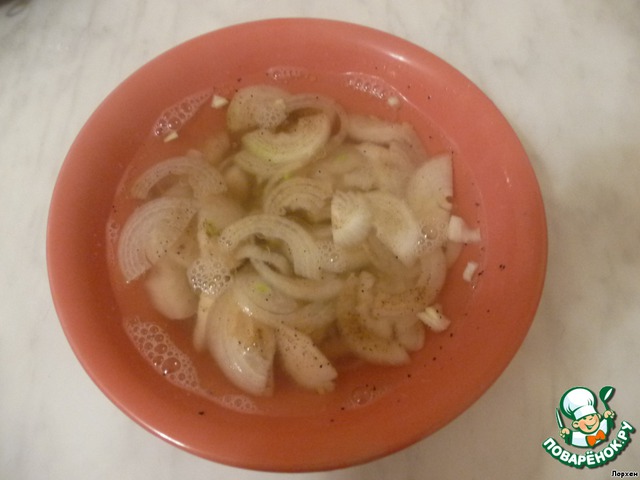 4. Лук нарежьте полукольцами, добавьте черный перец.