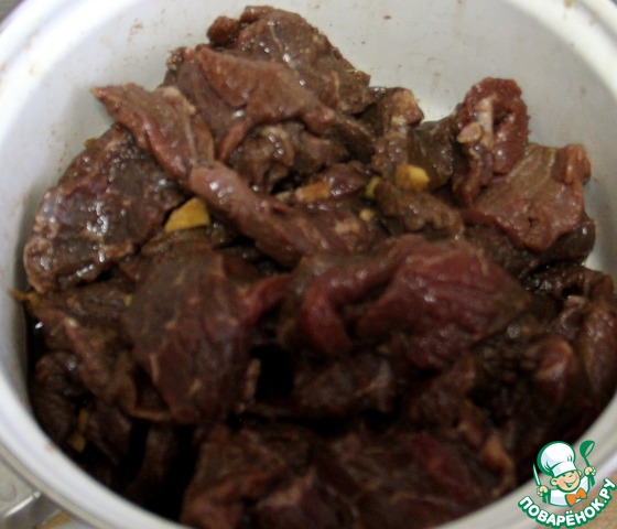 Заливаем говядину соусом, перемешиваем и оставляем на час мариноватся.