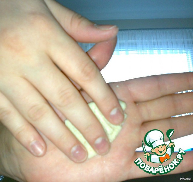 Отрываем небольшой кусок и делаем такой овал.