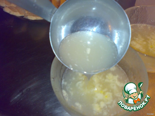 Распределяем по чашечкам и давим через чесночницу,солим и заливаем бульоном из кастрюли.Мешаем и соус готов.
