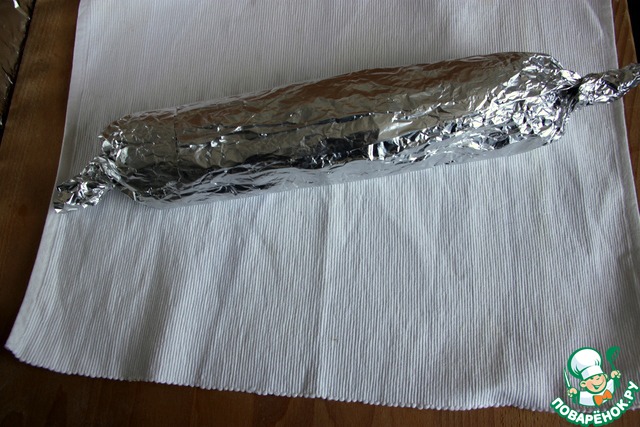 Выкладываем рулет в предварительно разогретую до 250*С духовку сначала на 10 мин.