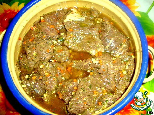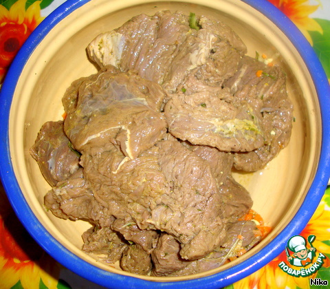 Мясо в маринаде (стояло в холодильнике с вечера до вечера)