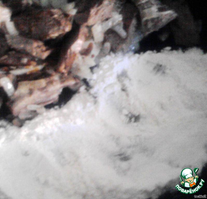 Хорошо перемешать муку с мясом, чтобы мука равномерно распределилась вокруг кусочков.