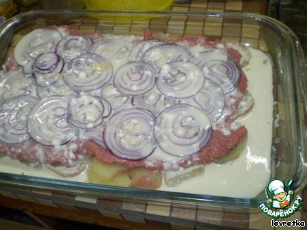 | Это мое изобретение, навеянное мне рецептом мяса по-французки. Очень вкусно, быстро и без больших проблем. |