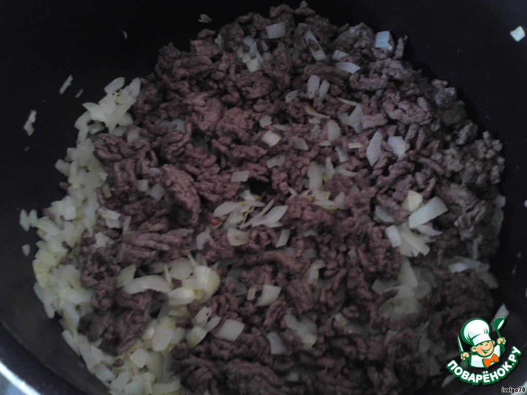 Добавляем фарш к луку