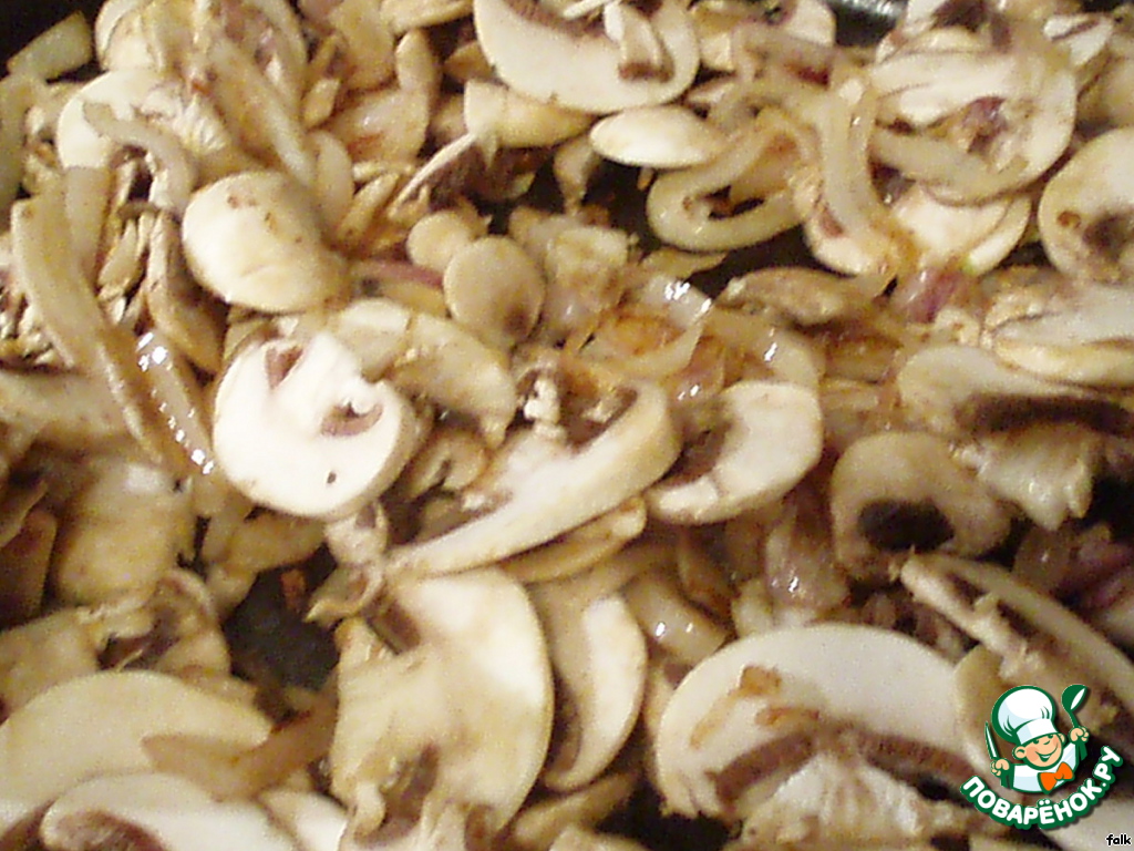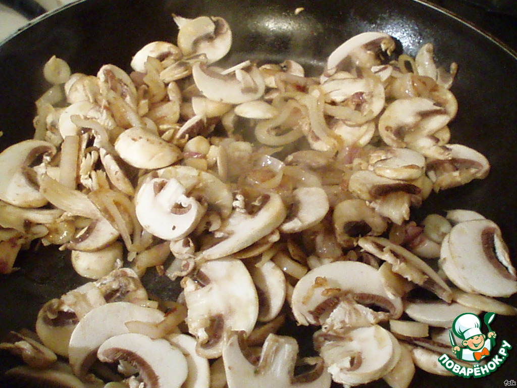 добавим шампиньоны, чеснок, кусочек сливочного масла