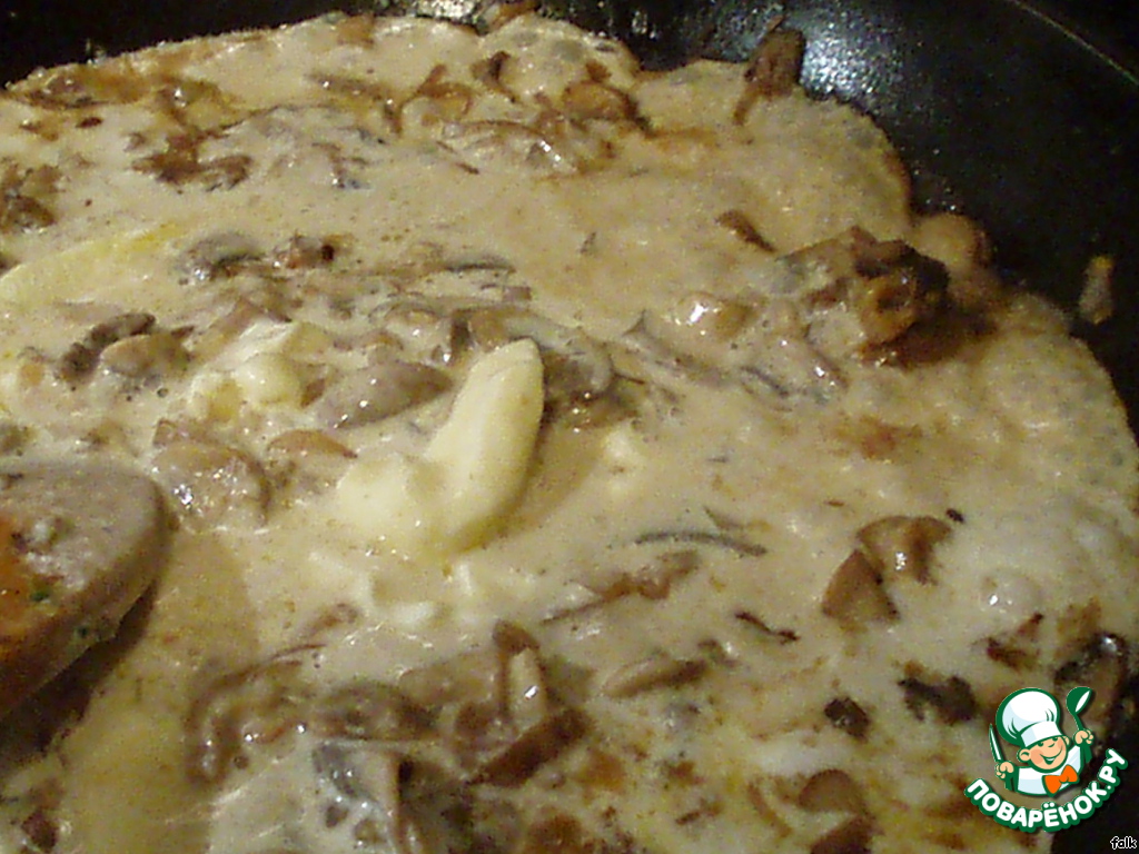 Когда пламя угаснет, введем сливки, хорошенько перемешаем