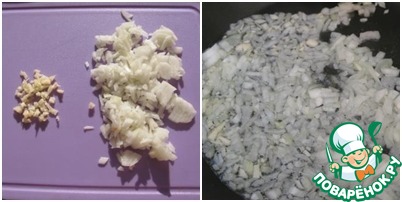 Чеснок и 1 луковицу нарезать и спассеровать на растительном масле.