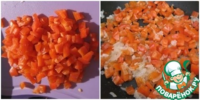 К обжаренным овощам добавить томаты в собственном соку, перемешать и протушить пару минут. Снять с огня.