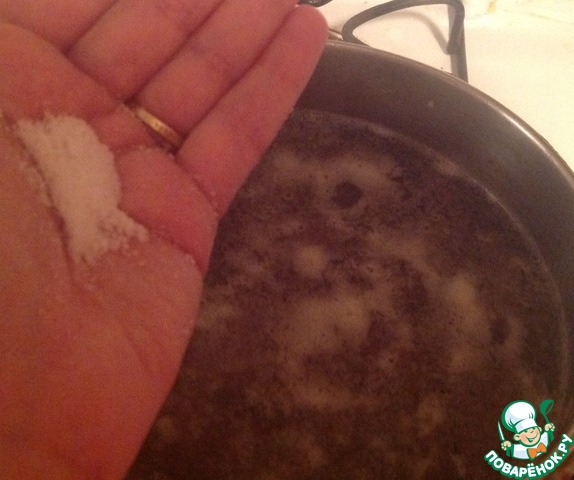 Как только вода закипела, снимаем пену. Убавляем огонь.