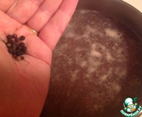 При этом продолжаем удалять пену, как только она появляется. Небольшой секрет: если хотите, чтобы бульон у вас был прозрачным, во-первых, не дайте мясу с пеной кипеть, сразу снимайте пену. Во-вторых, когда снимете пену, опустите в кипящий бульон небольшую очищенную луковицу целиком, вытащите её в конце варки. Эти нехитрые действия помогут вам сохранить бульон прозрачным. Что же касается меня, я сегодня решила не заморачиваться по поводу прозрачности бульона. Мелкой луковицы у меня не было, а те две крупные что были, решила пустить в дело.