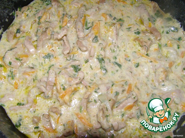 Немного потушив, добавить зелень, и совсем убрать огонь. Вот что получается :)