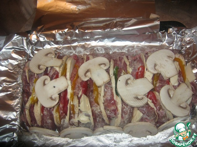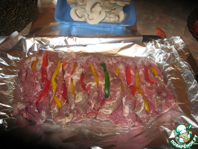 Остатки грибов нашли своё применение тоже-они украсили мясо сверху))