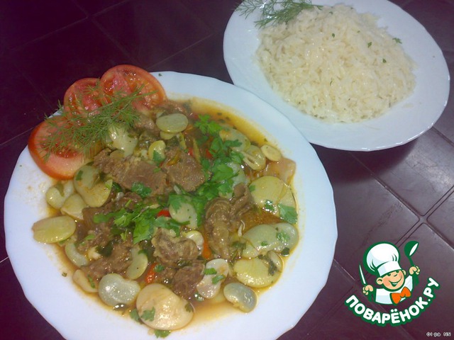 Свежая фасоль гигантес варится очень быстро. Если у вас сухая фасоль, то ее нужно предварительно отварить отдельно, как обычную фасоль. Можно также использовать фасоль консервированную.