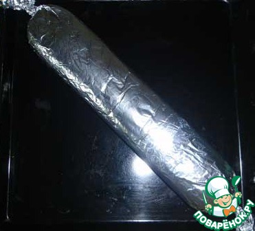 Сворачиваем туго в рулет и заворачиваем его плотно в фольгу