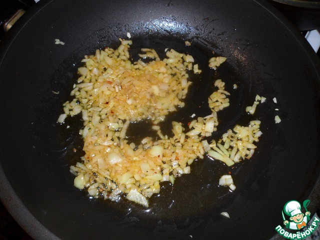 Топим сливочное масло, обжариваем в нем лук до золотистого цвета.