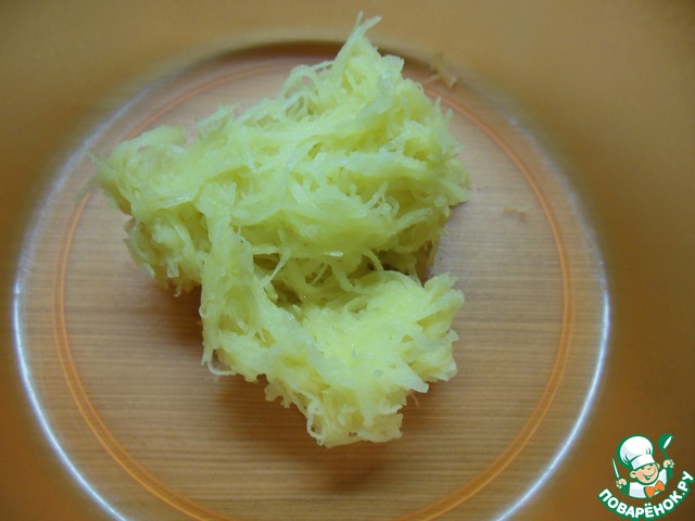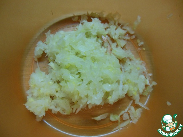Картофель натрём на мелкой тёрке.