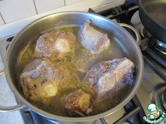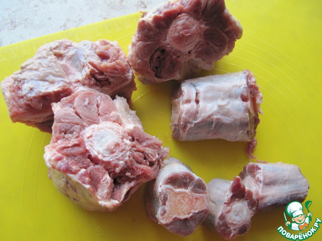 Бычий хвост разрубить на порционные куски (безопаснее, если это сделает мясник). Вымыть.