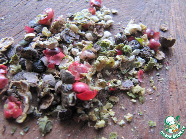 Каждый кусочек посыпаю смесью перцев. Выкладываю в чашу, засыпаю подготовленными овощами. Жидкость должна чуток не доходить до верхушек кусочков. Готовлю в режиме тушения 2 часа, потом томление 2 часа. Открываю и смотрю, мясо должно легко отходить от кости, если хвост далеко не первой молодости, то томим до готовности еще.