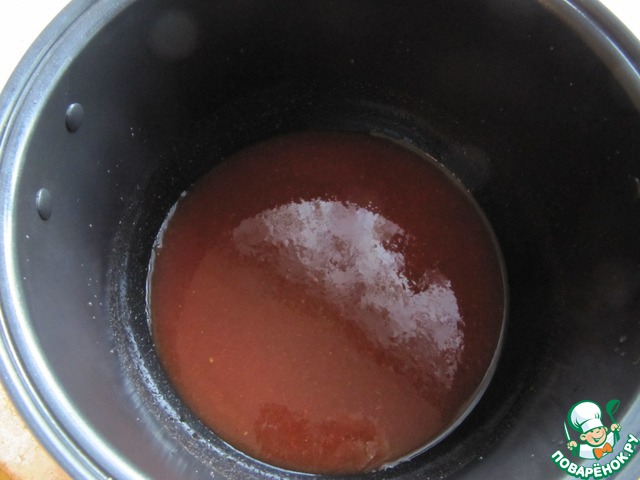 В чашу мультиварки выливаю томатную пассату (домашнюю), очищенные от кожи и протертые помидоры. Остались от конкурса соус чили и соевый соус, я добавила немного, пару ложек. Выливаю вино, кладу лавровый лист. Пробую на вкус, немного солю.