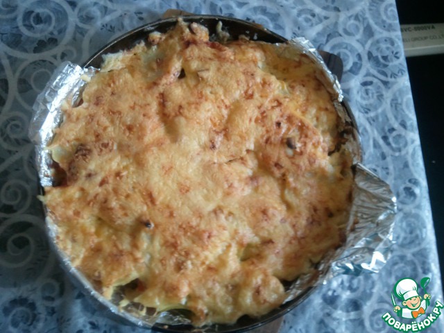 И все это покрываем тертым сыром. Еще не забываем добавить любовь. Отправляем в духовку на 1 час при 220 гр. И ждем-с...