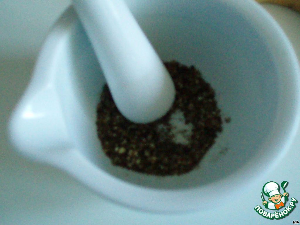 Смесь перцев растолочь в ступке.
