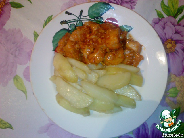 Говядина в кисло-сладком соусе с жареной картошкой