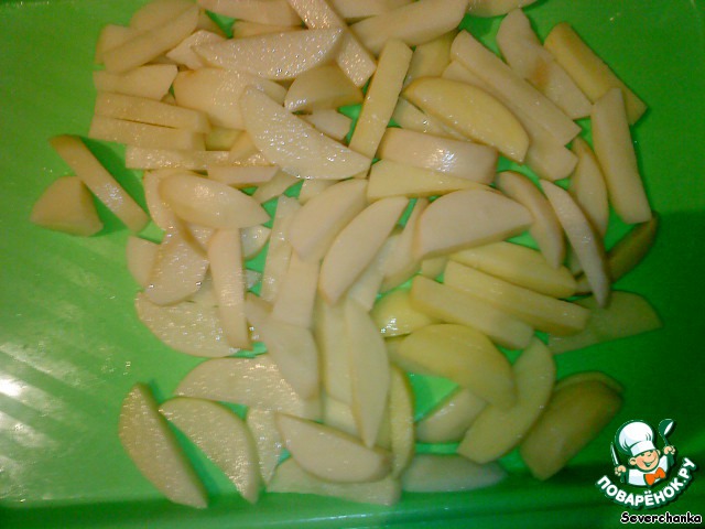 Картофель нарезаем брусочками, сушим, солим