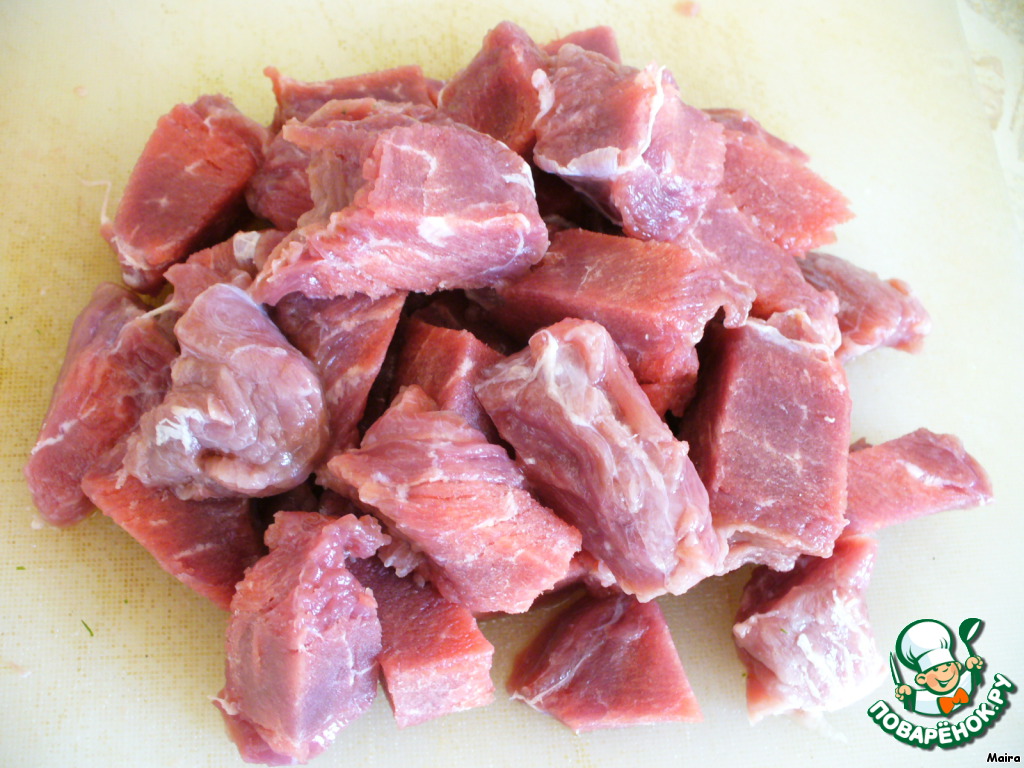 Говядину нарезать небольшими кусочками.