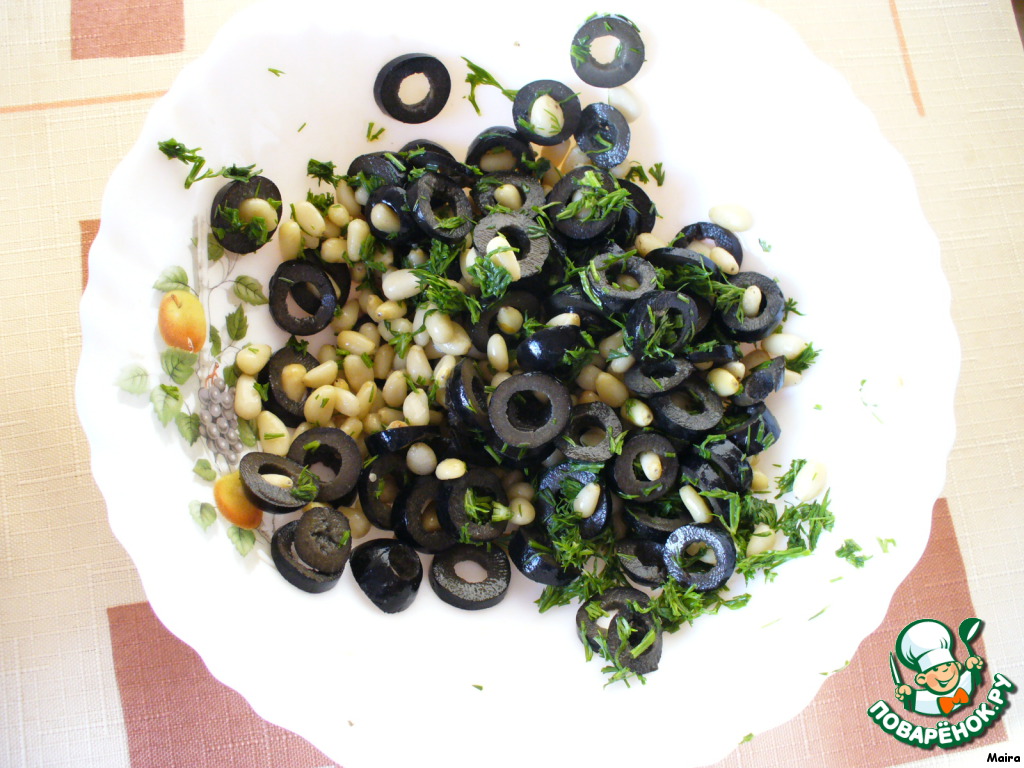 Маслины нарезать кружочками, укроп мелко нарубить.