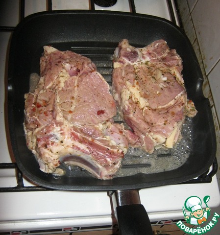 Выкладываем на разогретую сковородку по 2 стейка и начинаем жарить (Масло мы не льём!!!-сковородка прекрасно справляется без него)