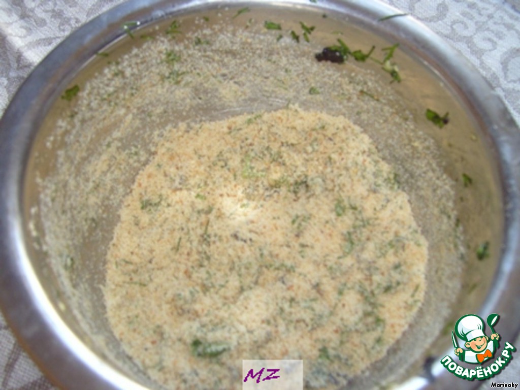 Оставшуюся смесь зелени и чеснока смешать с панировочными сухарями.