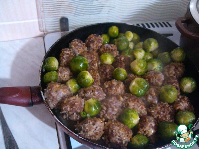 | Это блюдо "родилось" спонтанно:были фарш, брюссельская капуста и необходимость в быстром приготовлении ужина. А так как тефтели в готовом виде почему -то внукам напомнили ежиков, то название дали соответствующее. Получилось вкусно и симпатично! |