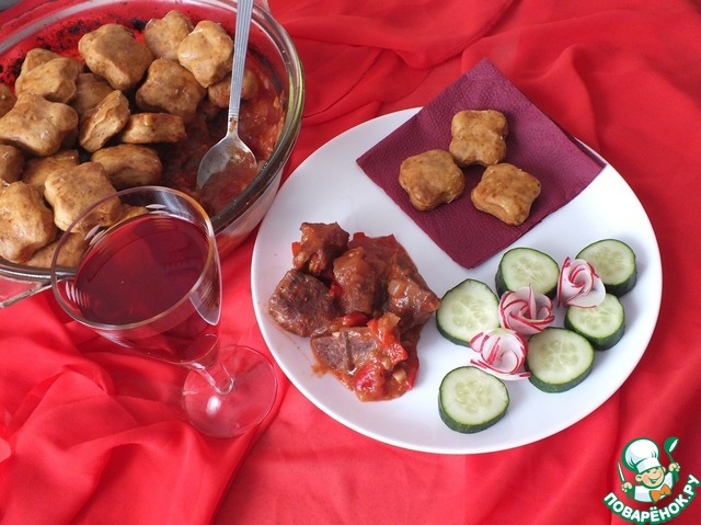 Пряный гуляш с тминными клецками