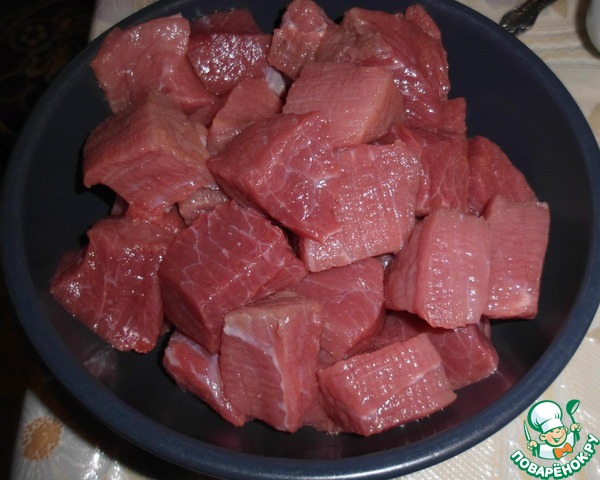 2. Мясо нарезаем средними кубиками, удаляя пленки.