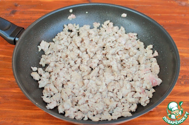 Нагрейте 1 столовую ложку оливкового масла в большой сковороде на среднем огне. Добавьте фарш. Обжарьте до коричневого цвета, около 10 минут.