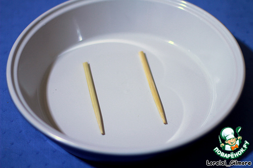 Начнем с главного - приспособление для водяной бани. Глубокая форма для воды, форма для выпечки и палочки или шпажки.