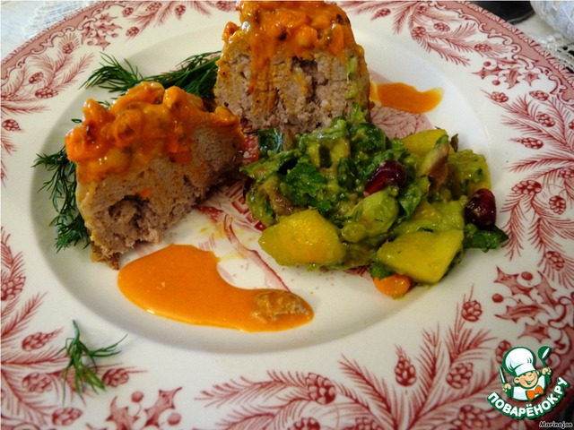 Я заполнила фаршем формы, а в некоторые положила ягоды облепихи и запекала в духовке 1 час.