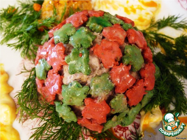Получается вот такая порционная закуска в виде яркого елочного украшения