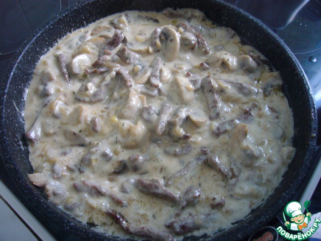 | По этому рецепту бефстроганов готовит мой муж, предполагаю, что рецепт позаимствован из какого-нибудь издания типа "Мужская кулинария". Готовила под словесные комментарии мужа о том, что "мясо и женщина - две несовместимые вещи", откуда у "солнца и луны моей души" подобное мнение сложно сказать, видимо ревность. Получилось вкусно, пробуйте. |